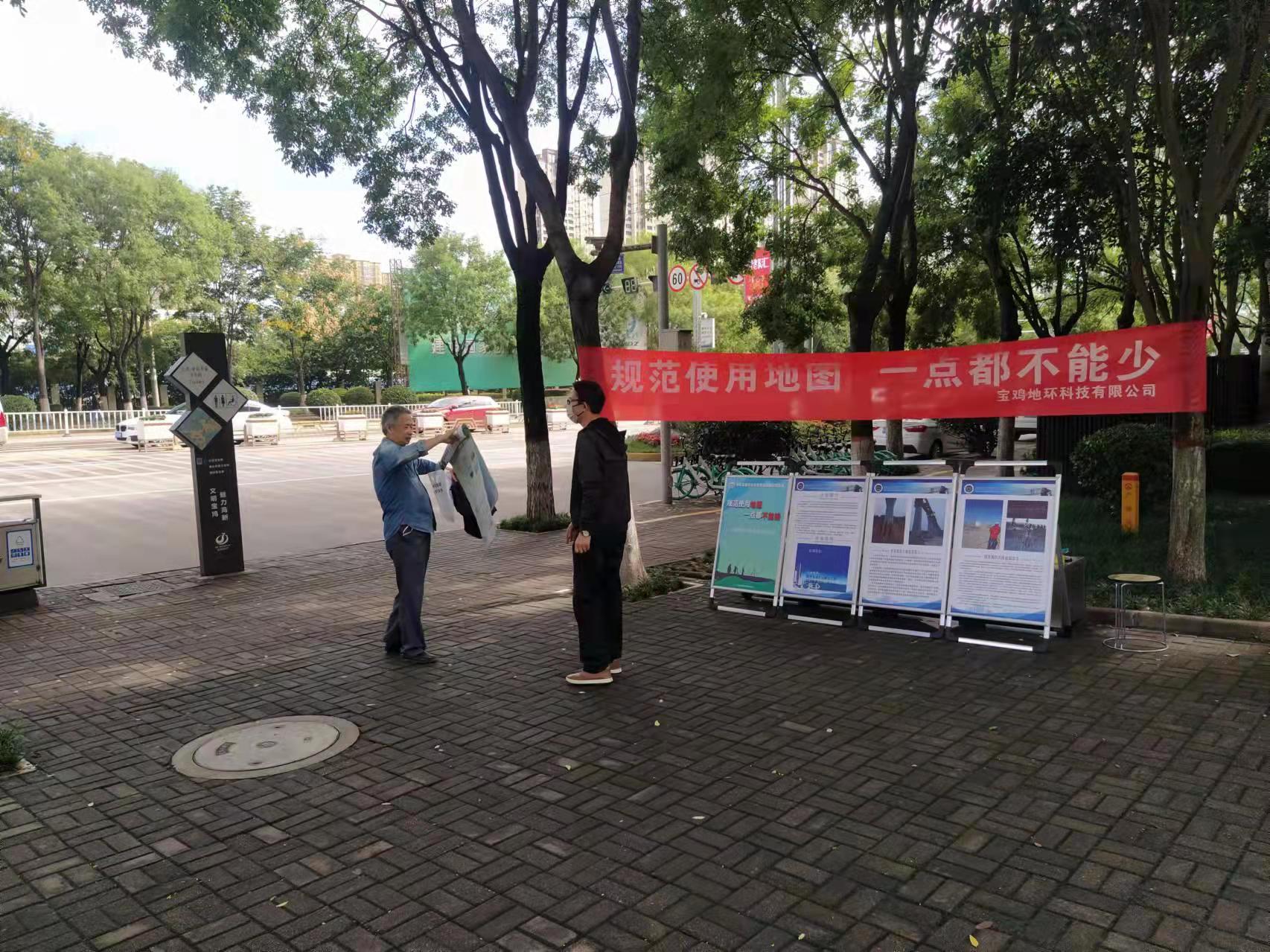 寶雞地環(huán)科技有限公司在領(lǐng)導(dǎo)的積極帶領(lǐng)下,組織公司員工參加測(cè)繪法暨國(guó)家版圖意識(shí)宣傳有獎(jiǎng)知識(shí)競(jìng)賽活動(dòng),懸掛橫幅、發(fā)放宣傳彩頁、發(fā)放地圖、宣傳手提袋等形式,圍繞地圖種類、中國(guó)版圖知識(shí)、測(cè)繪法律法規(guī)等重點(diǎn),向廣大市民開展深入、細(xì)致的宣傳。